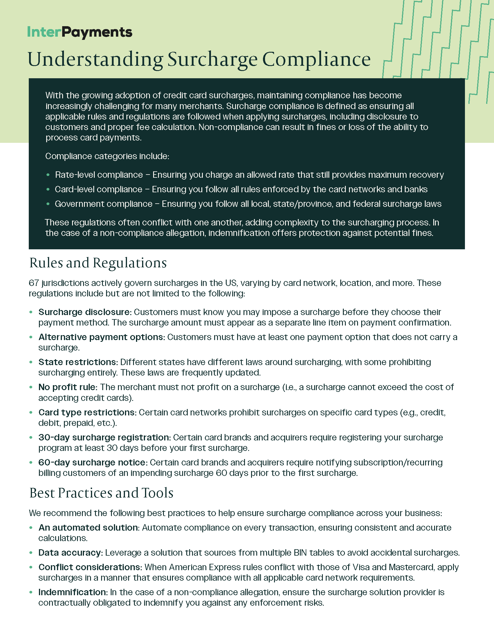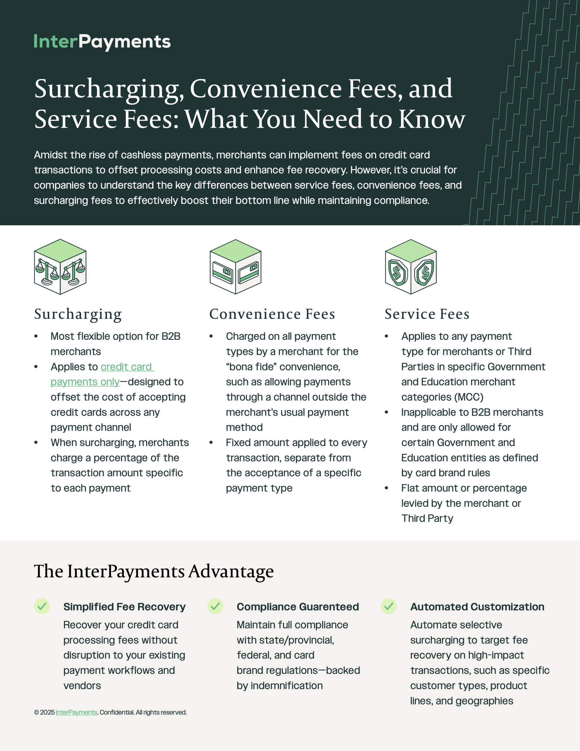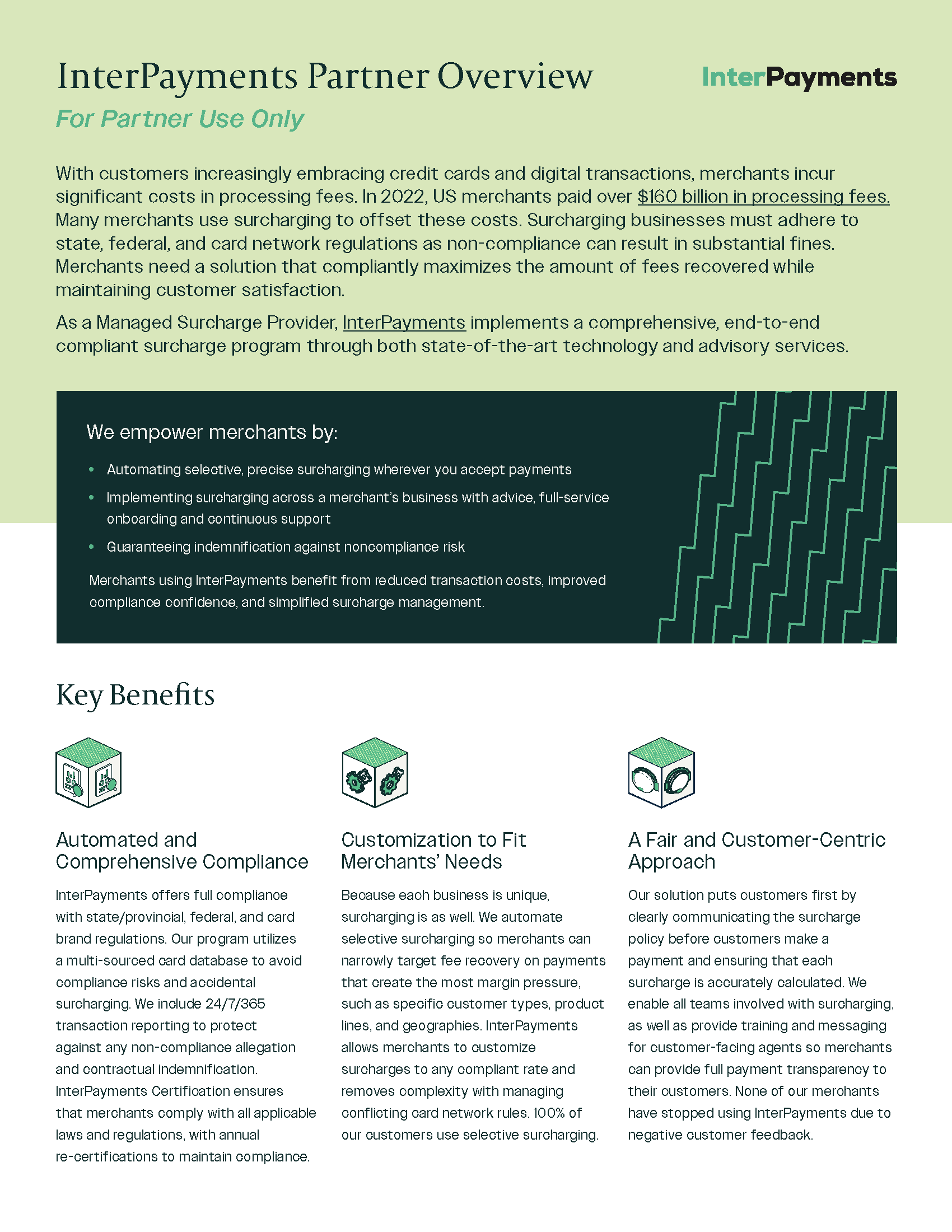 InterPayments has partnered with Bectran to help merchants recover credit card processing fees through fully compliant surcharging, increasing savings without replacing existing payment processes or vendors. This resource library provides comprehensive marketing and sales materials about InterPayments. If you have any questions or inquiries, please contact partners@interpayments.com.